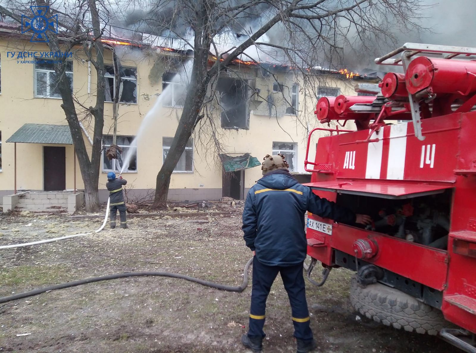 «Близько 12:30 ворог влучив по навчальному закладу у селищі Дворічна, спричинивши велику пожежу на площі 800 кв.м. Її гасили 20 осіб особового складу та 4 одиниці техніки ДСНС протягом майже 3-х годин. О 10:40 рятувальники Куп’янська виїжджали на перевірку території міста після ворожих обстрілів. Виявлено пошкодження будівлі підприємства, яке наразі не експлуатувалося. Пожежі не зафіксовано», — повідомили в ДСНС.