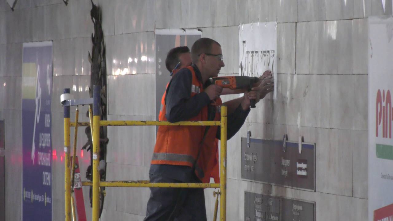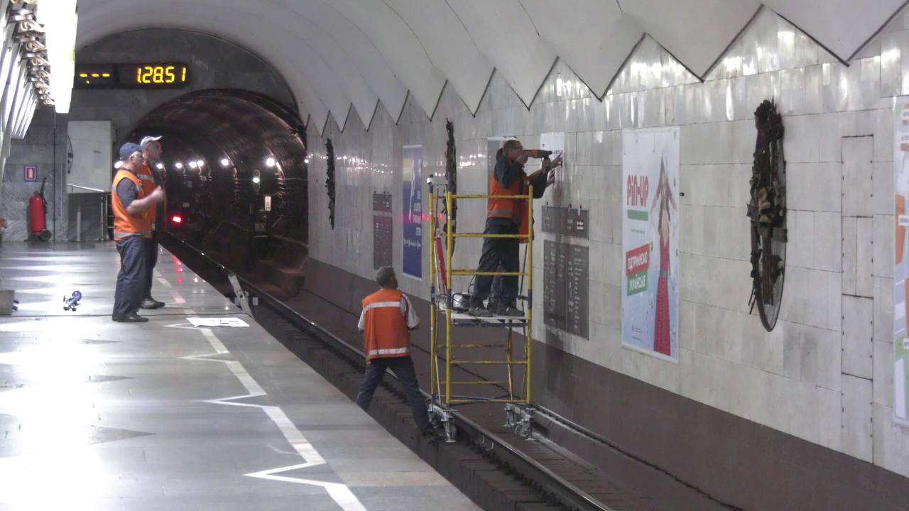 «Співробітники метрополітену встановлюють нові літери з назвою на колійні стіни на станції «Ярослава Мудрого». Вже встановлено два комплекти літер з восьми», — йдеться у дописі.