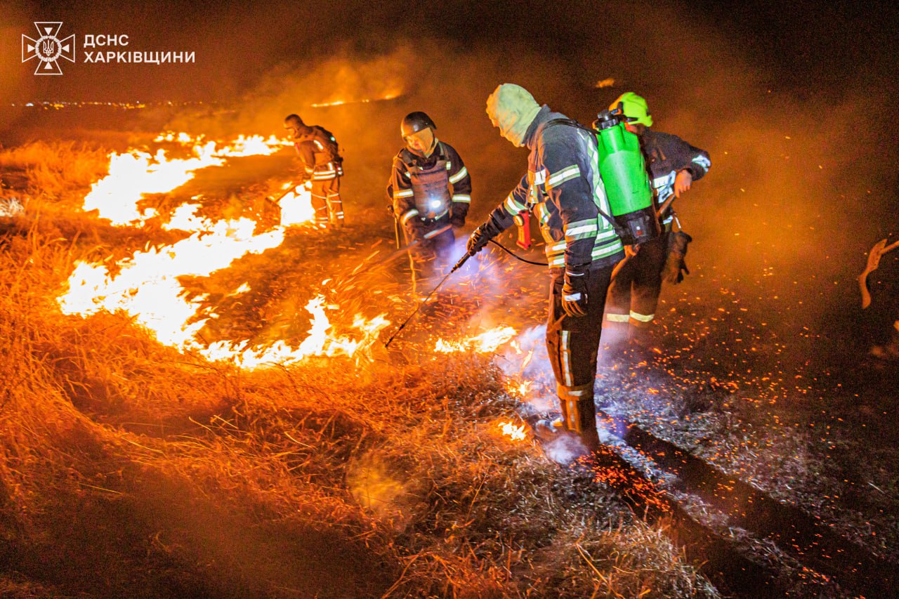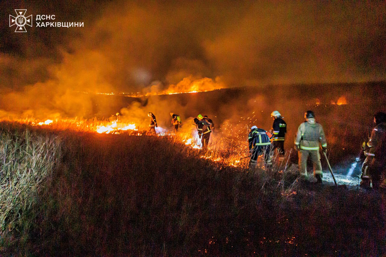 «13 березня близько 17-ї години сталася чергова пожежа сухої трави на відкритому просторі на околиці с. Слобідське Харківського району. Вітряна погода сприяла швидкому поширенню полум’я на велику площу. І тільки, коли фронт вогню почав підходити до меж людських поселень, мешканці забили на сполох і викликали рятувальників», — йдеться у дописі.