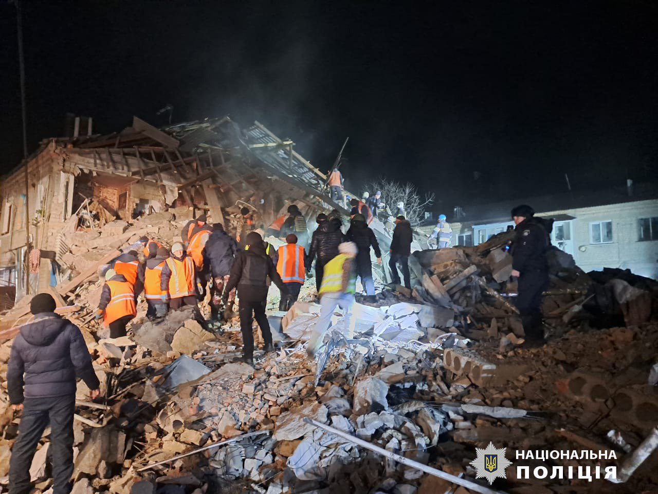 За попередніми даними Харківської обласної прокуратури, від удару по двоповерховому будинку загинули двоє людей, п’ятеро поранені, під завалами ще можуть бути люди. Пошуково-рятувальна операція триває.