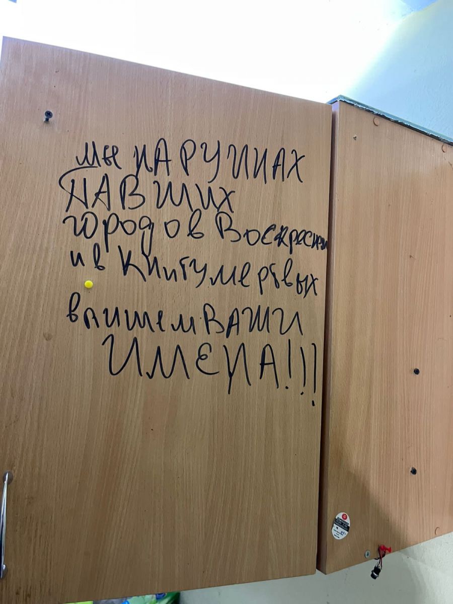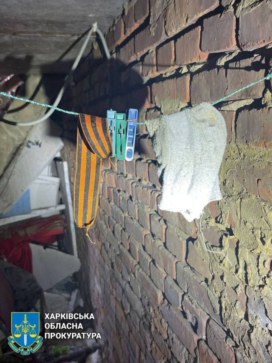На опублікованих силовиками фото — приміщення із ґратами та спальними місцями просто на підлозі, приладдя для катування струмом, символіка окупантів — літери «Z» на стінах, георгіївські стрічки тощо.