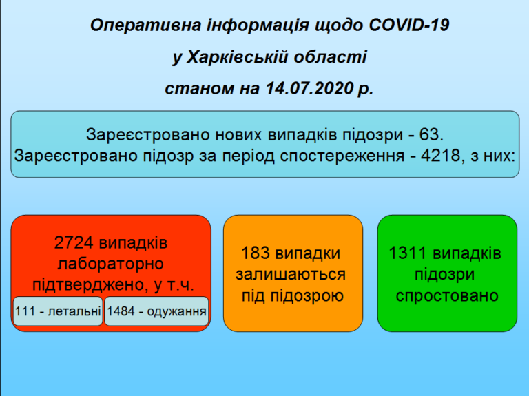 12:32 Показники МОЗ шодо СOVID-19 на Харківщині станом на 14 липня не перевищені.