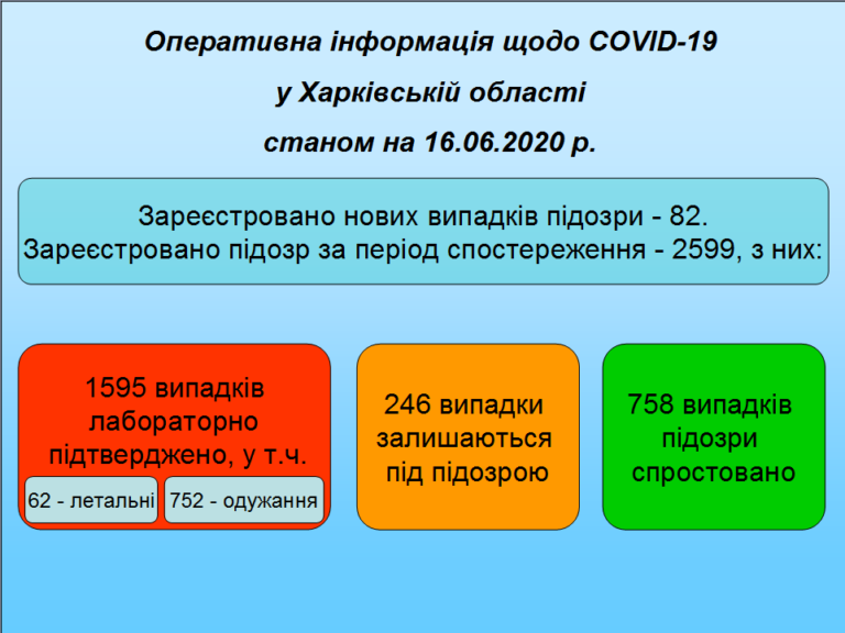 10:30 +37 випадків COVID-19 на Харківщині за добу (всього 2208), +33 одужали (всього 1136), нових летальних випадків не зареєстровано (всього 84) — лабцентр.