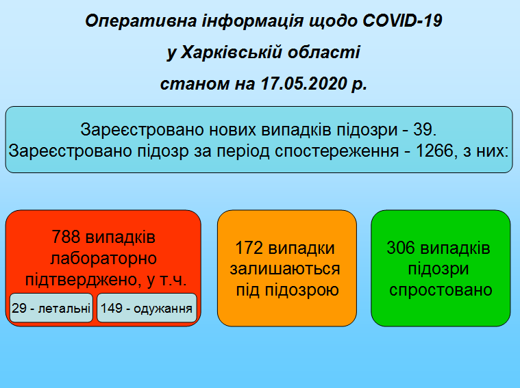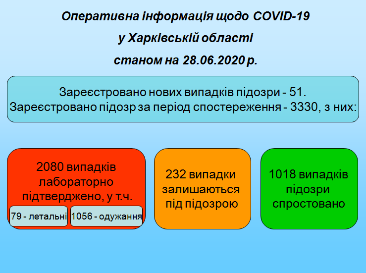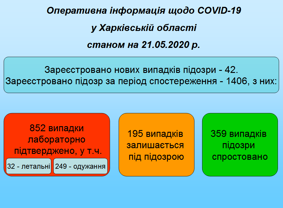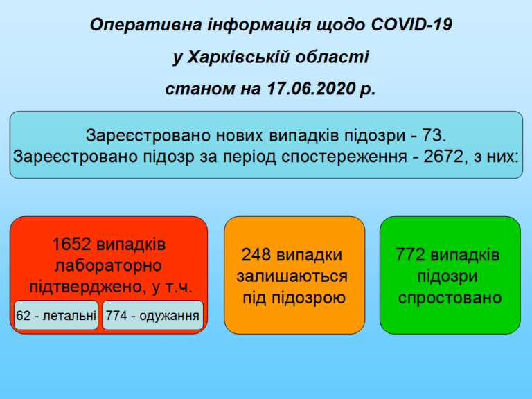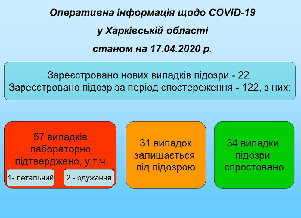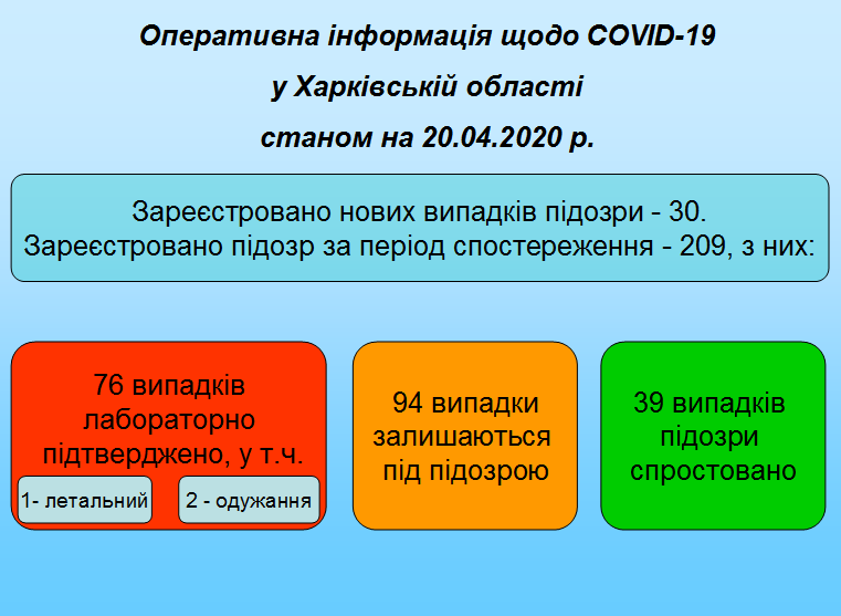 10:30 +1 померлий на Харківщині за добу (всього 80), +17 хворих (всього підтверджено 2097), +20 одужали (всього 1076) — лабцентр.