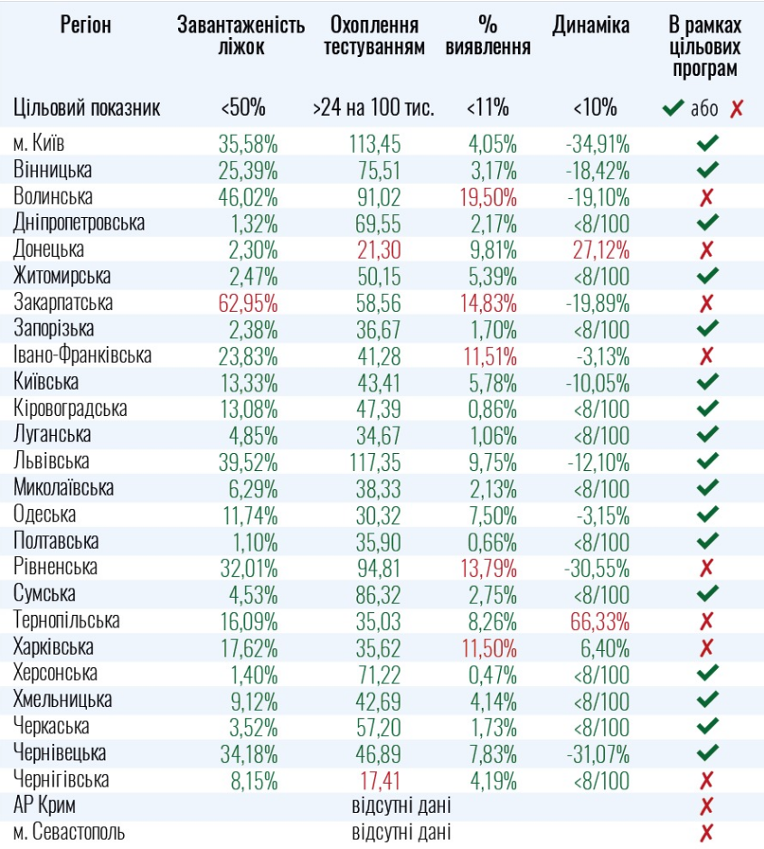 - Коефіцієнт виявлення випадків COVID-19 — 12,97% (має бути менше 11%)