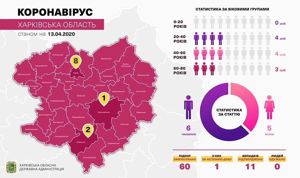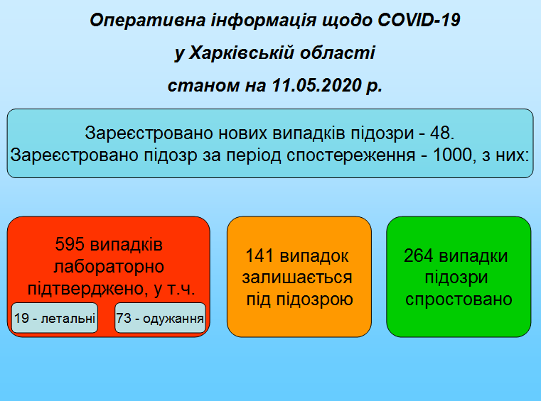 11:00 +1 померлий з COVID-19 на Харківщині (всього 95), +47 хворих (всього 2418), +12 одужали (всього 1237), повідомляє лабцентр.