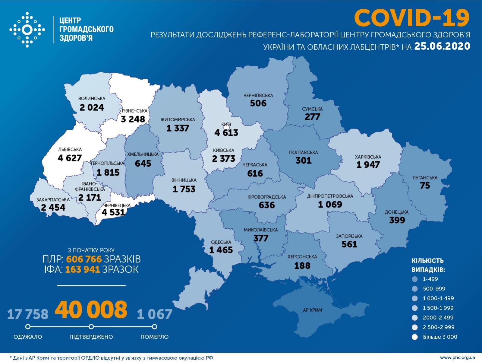 9:30 +1109 нових випадків COVID-19 в Україні — новий рекорд за добу. Всього підтверджено 41117 випадків COVID-19, з них 1086 летальних, 18299 пацієнтів одужало.