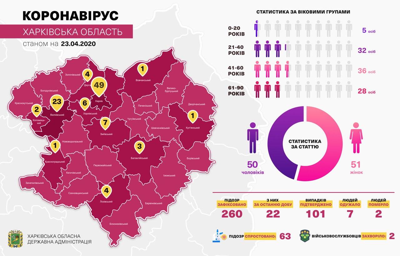 10:30 +4 померлих пацієнтів з COVID-19 на Харківщині за добу (всього 91), +51 хворий (всього підтверджено 2313), +22 одужали (всього 1184) — лабцентр.